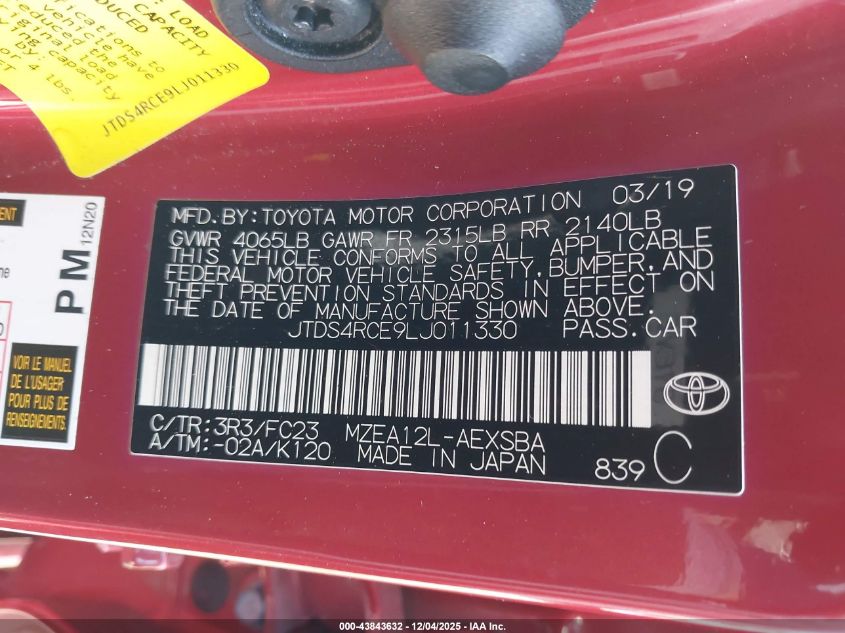 2020 TOYOTA COROLLA 2020 року Бензин, 2.0, Передний привод, vin - JTDS4RCE9LJ011330 из США