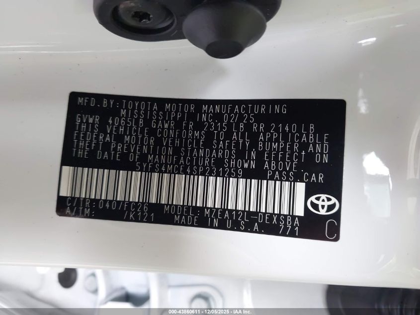 2025 TOYOTA COROLLA 2025 року Бензин, 2.0, Передний привод, vin - 5YFS4MCE4SP231259 из США
