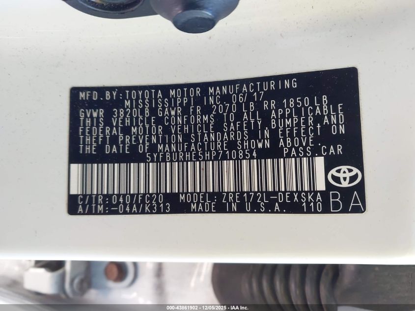 2017 TOYOTA COROLLA L