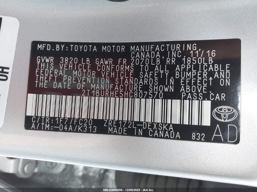 2017 TOYOTA COROLLA L