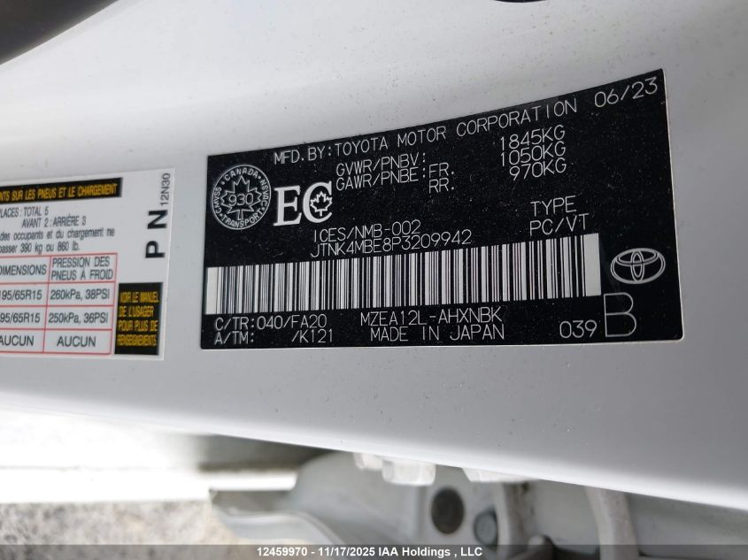 2023 TOYOTA COROLLA 2023 року Бензин, , Передний привод, vin - JTNK4MBE8P3209942 из США