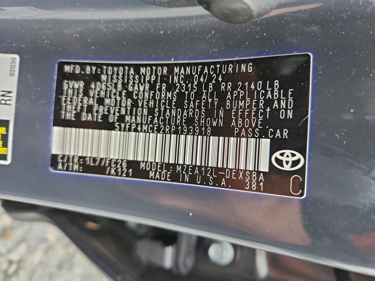 2024 TOYOTA COROLLA 2024 року Бензин, 2.0, , vin - 5YFP4MCE2RP193918 из США