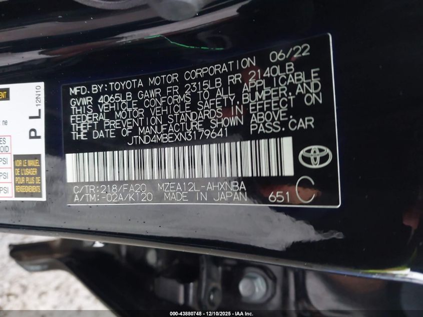 2022 TOYOTA COROLLA 2022 року Бензин, 2.0, Передний привод, vin - JTND4MBEXN3179641 из США