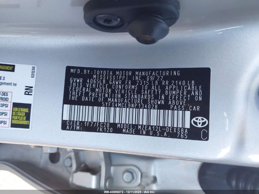 2022 TOYOTA COROLLA 2022 року Бензин, 2.0, Передний привод, vin - 5YFS4MCE9NP134028 из США