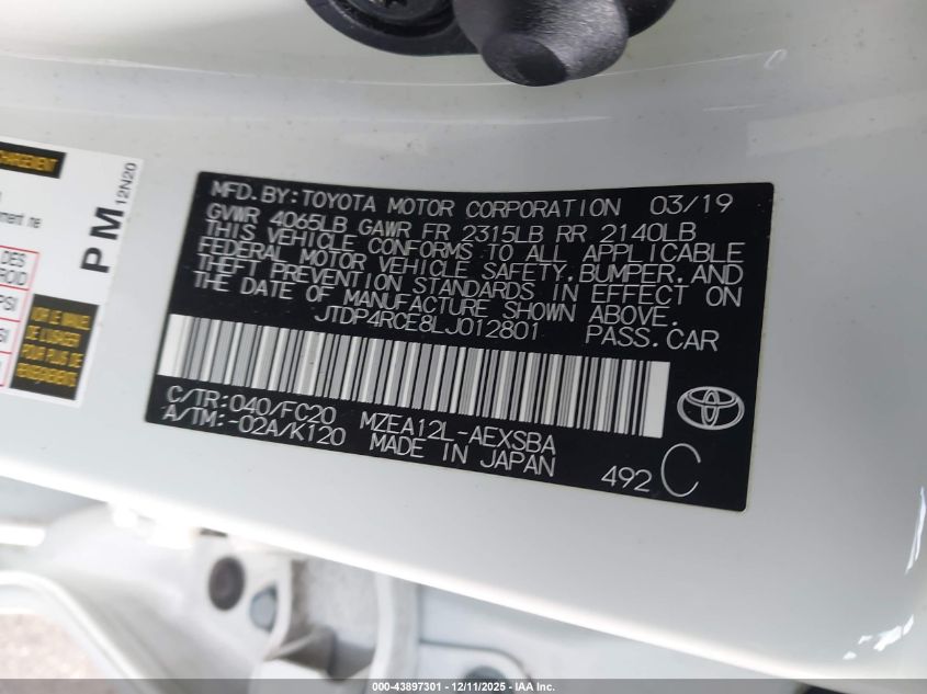 2020 TOYOTA COROLLA 2020 року Бензин, 2.0, Передний привод, vin - JTDP4RCE8LJ012801 из США