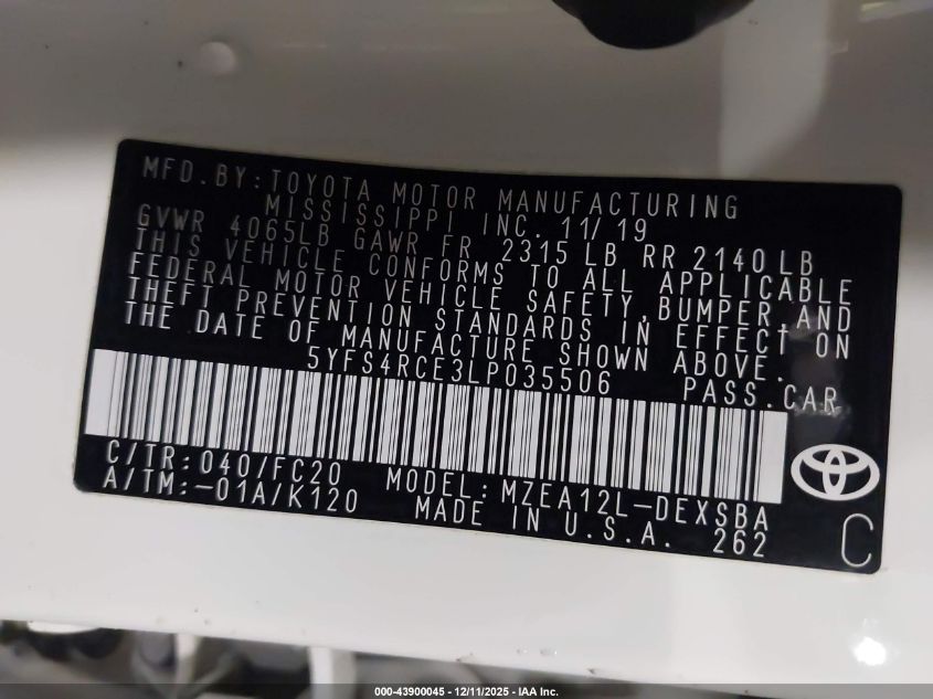 2020 TOYOTA COROLLA 2020 року Бензин, 2.0, Передний привод, vin - 5YFS4RCE3LP035506 из США