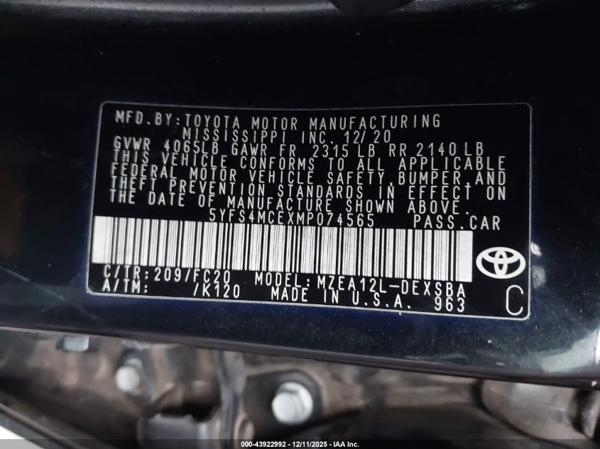 2021 TOYOTA COROLLA 2021 року Бензин, 2.0, Передний привод, vin - 5YFS4MCEXMP074565 из США