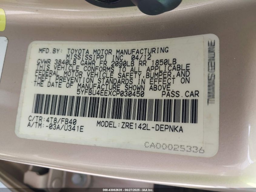 Цвет ЗолотойЦилиндры 4Привод Передний приводVIN 5YFBU4EEXCP030450Состояние Заводится и едет (проверено)Повреждения ЗадняяДата аукциона 2025-12-10 AutoRIA