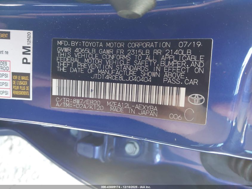 2020 TOYOTA COROLLA 2020 року Бензин, 2.0, Передний привод, vin - JTDT4RCE8LJ040404 из США
