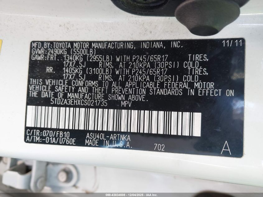 2012 TOYOTA HIGHLANDER LIMITED