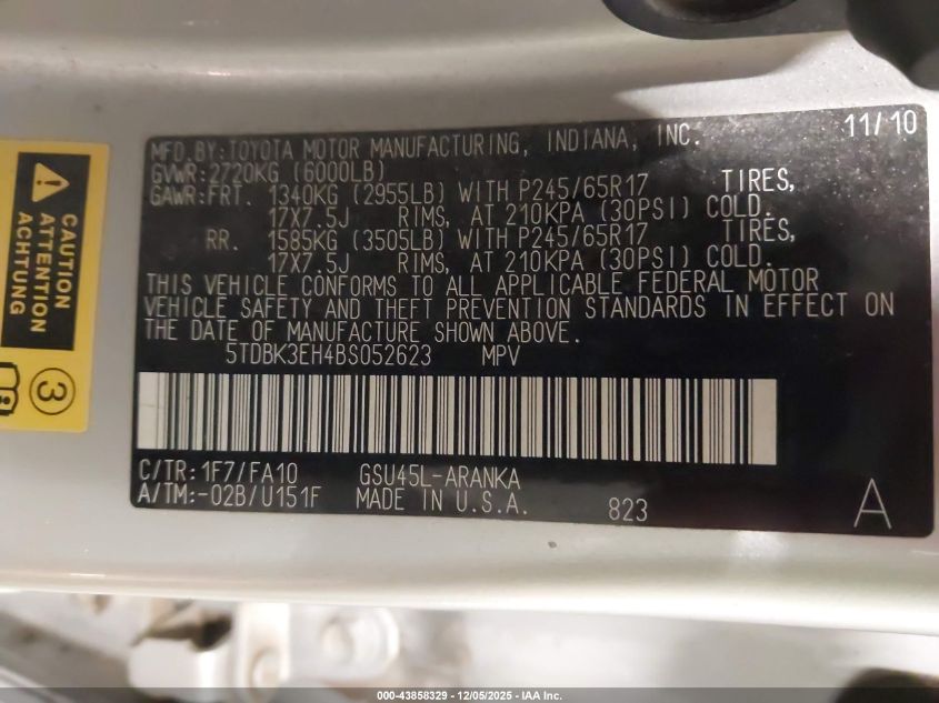 2011 TOYOTA HIGHLANDER 2011 року Бензин, 3.5, Полный привод, vin - 5TDBK3EH4BS052623 из США