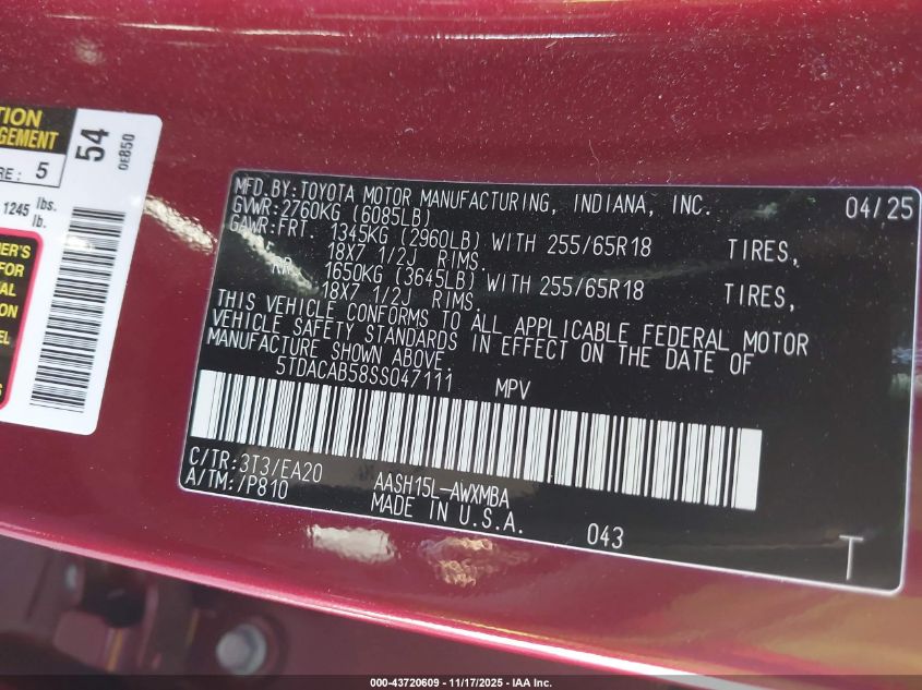Цвет БордовыйЦилиндры 4Привод Полный приводVIN 5TDACAB58SS047111Состояние СтационарноПовреждения Передняя левая AutoRIA