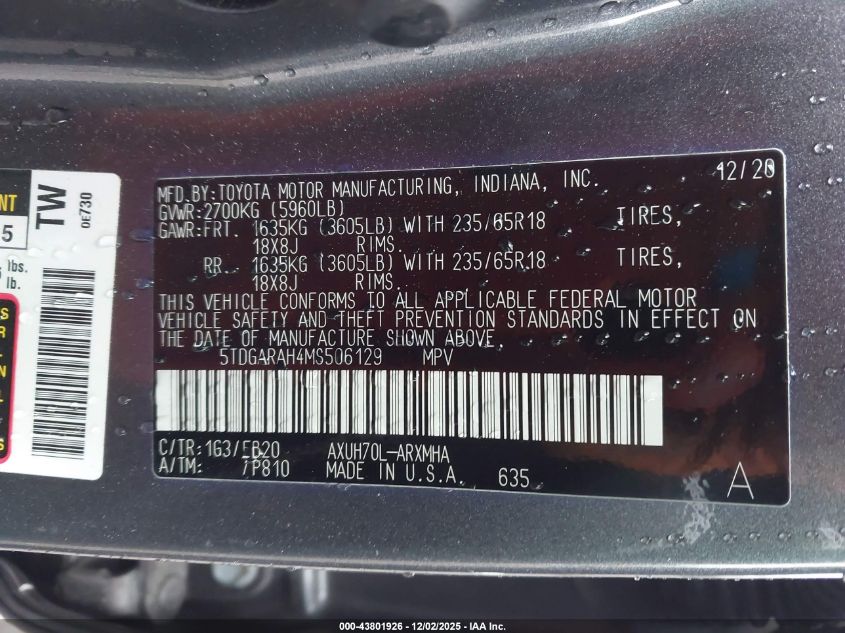2021 TOYOTA HIGHLANDER PLATINUM
