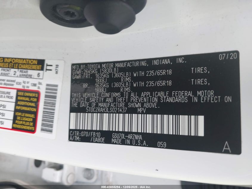 2020 TOYOTA HIGHLANDER LIMITED