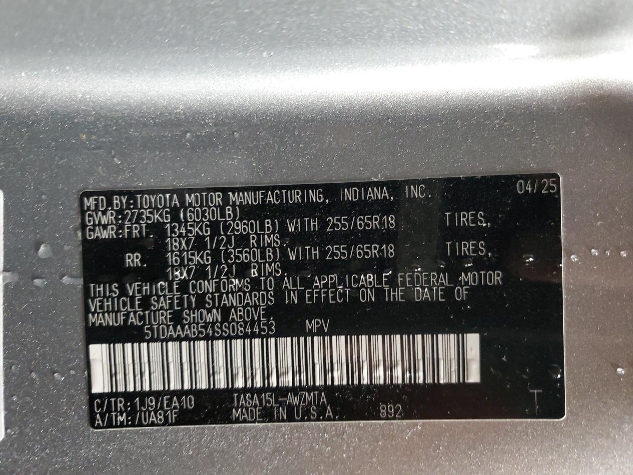 2025 TOYOTA HIGHLANDER 2025 року Бензин, 2.4, Полный привод, vin - 5TDAAAB54SS084453 из США