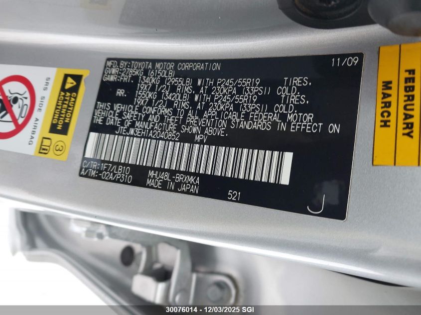 2010 TOYOTA HIGHLANDER 2010 року Бензин, , Полный привод, vin - JTEJW3EH1A2040852 из США