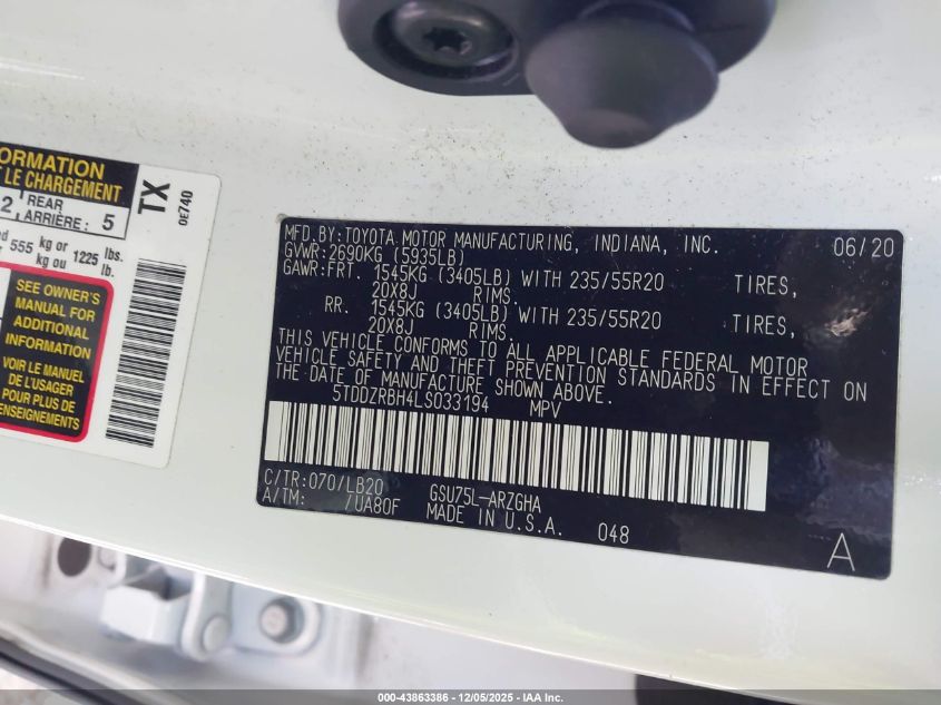 2020 TOYOTA HIGHLANDER LIMITED