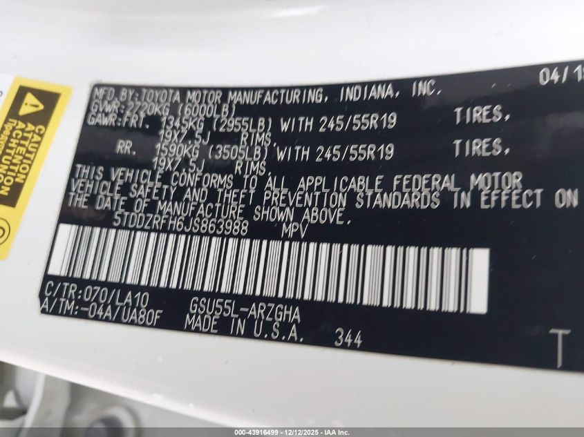 2018 TOYOTA HIGHLANDER 2018 року Бензин, 3.5, Полный привод, vin - 5TDDZRFH6JS863988 из США