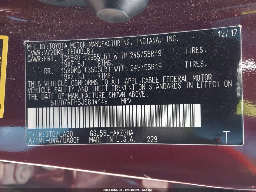 2018 TOYOTA HIGHLANDER 2018 року Бензин, 3.5, Полный привод, vin - 5TDDZRFH5JS814149 из США