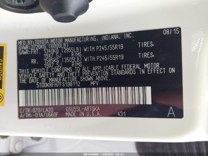 2015 TOYOTA HIGHLANDER 2015 року Бензин, 3.5, Полный привод, vin - 5TDDKRFH7FS198112 из США