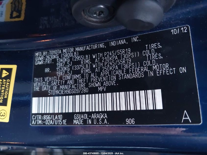 2013 TOYOTA HIGHLANDER 2013 року Бензин, 3.5, Передний привод, vin - 5TDYK3EH9DS097280 из США