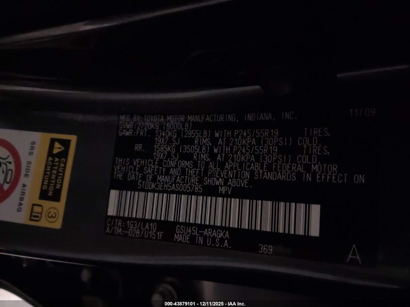 2010 TOYOTA HIGHLANDER 2010 року Бензин, 3.5, Полный привод, vin - 5TDDK3EH5AS005785 из США