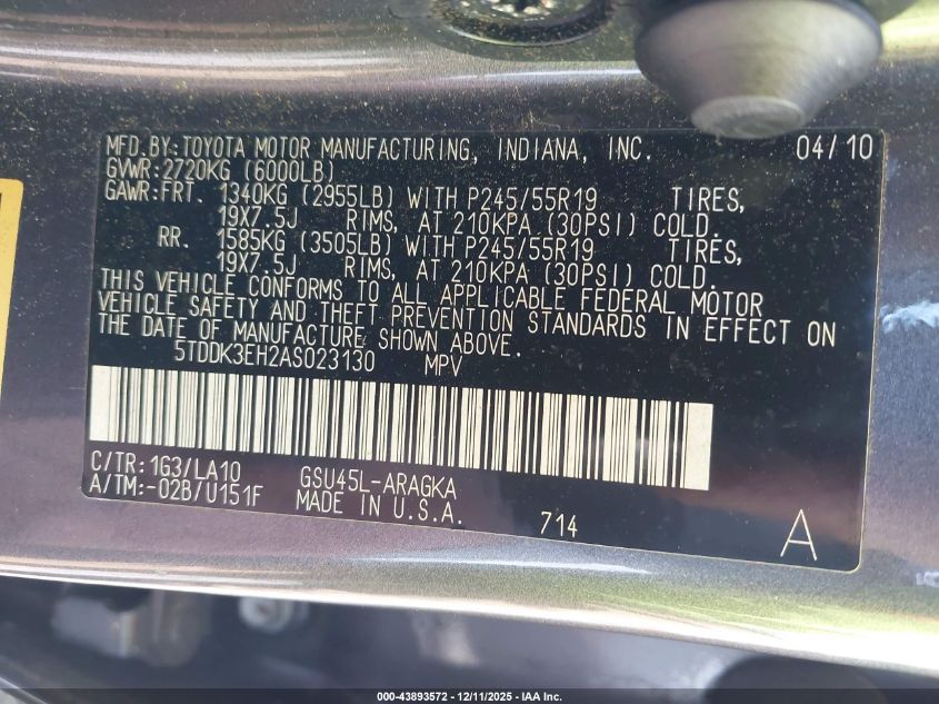 2010 TOYOTA HIGHLANDER 2010 року Бензин, 3.5, Полный привод, vin - 5TDDK3EH2AS023130 из США