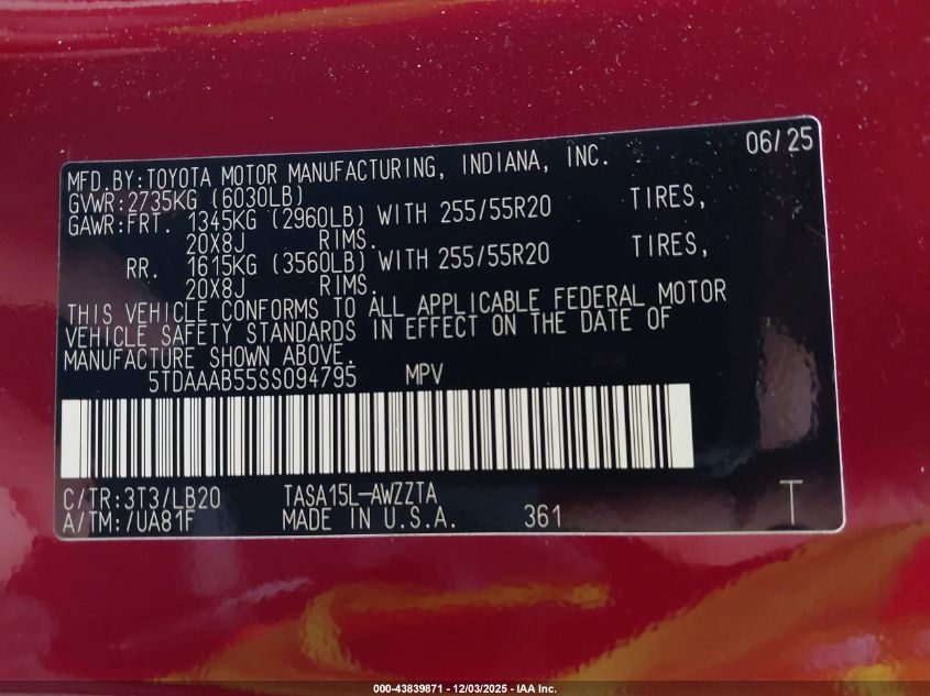 2025 TOYOTA HIGHLANDER 2025 року Бензин, 2.4, Полный привод, vin - 5TDAAAB55SS094795 из США
