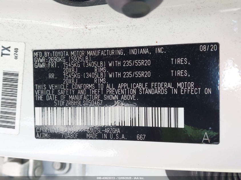 2020 TOYOTA HIGHLANDER 2020 року Бензин, 3.5, Полный привод, vin - 5TDFZRBH9LS050467 из США