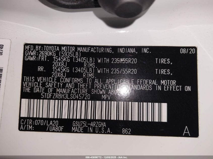 2020 TOYOTA HIGHLANDER 2020 року Бензин, 3.5, Полный привод, vin - 5TDFZRBH3LS045720 из США