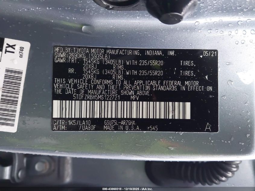 2021 TOYOTA HIGHLANDER 2021 року Бензин, 3.5, Полный привод, vin - 5TDFZRBH5MS122721 из США