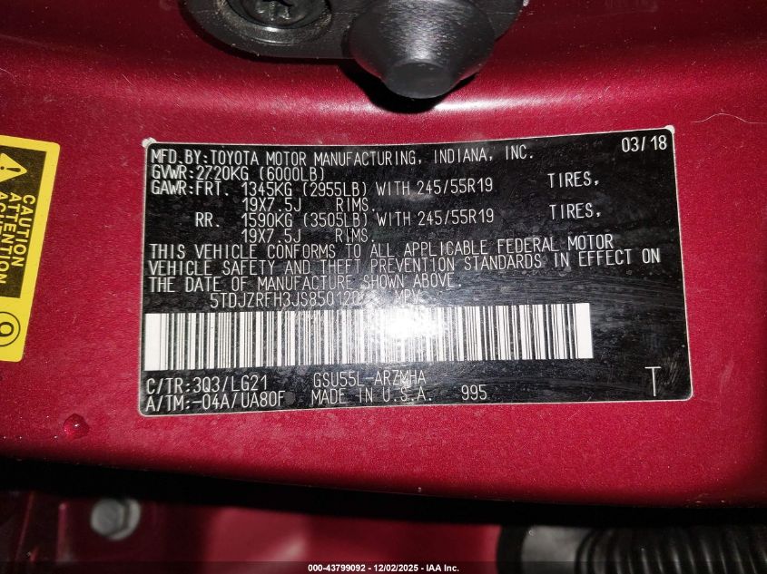 2018 TOYOTA HIGHLANDER 2018 року Бензин, 3.5, Полный привод, vin - 5TDJZRFH3JS850120 из США