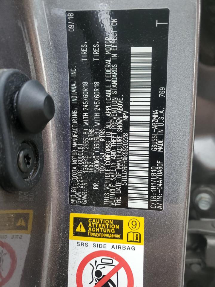2019 TOYOTA HIGHLANDER 2019 року Бензин, 3.5, Полный привод, vin - 5TDJZRFHXKS920228 из США