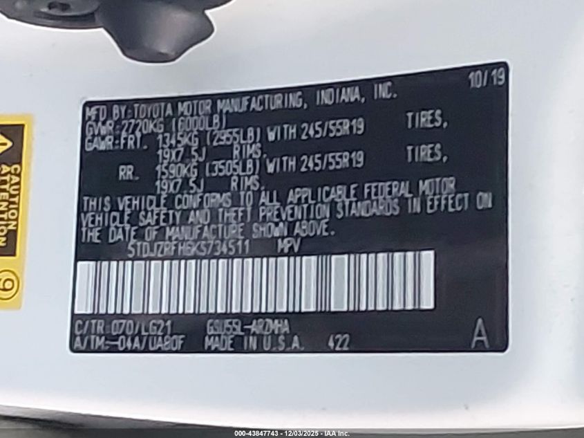 2019 TOYOTA HIGHLANDER 2019 року Бензин, 3.5, Полный привод, vin - 5TDJZRFH6KS734511 из США