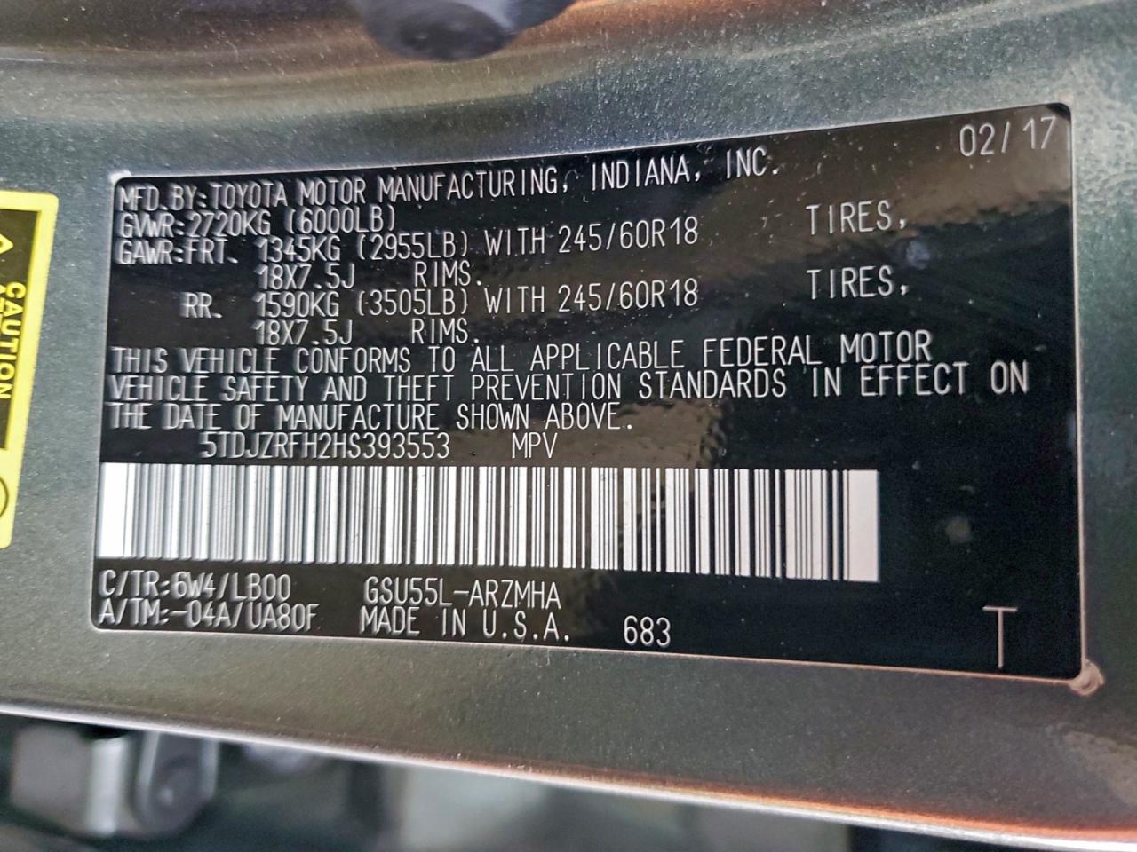 2017 TOYOTA HIGHLANDER 2017 року Бензин, 3.5, Полный привод, vin - 5TDJZRFH2HS393553 из США