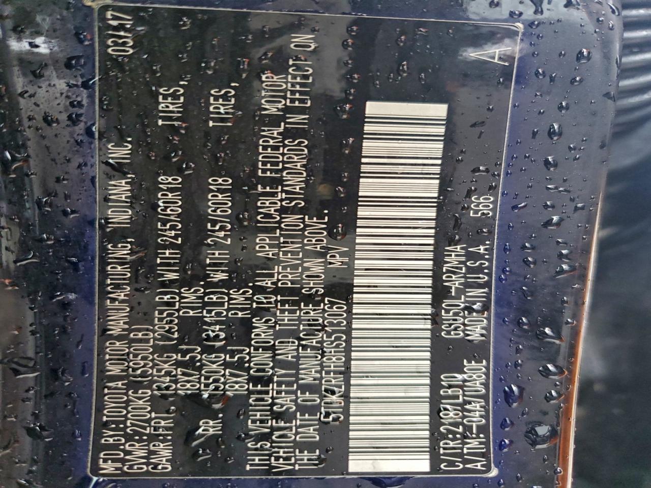 Цвет ЧерныйЦилиндры 6VIN 5TDKZRFH8HS513067Состояние НеизвестноПовреждения Передняя или задняя AutoRIA