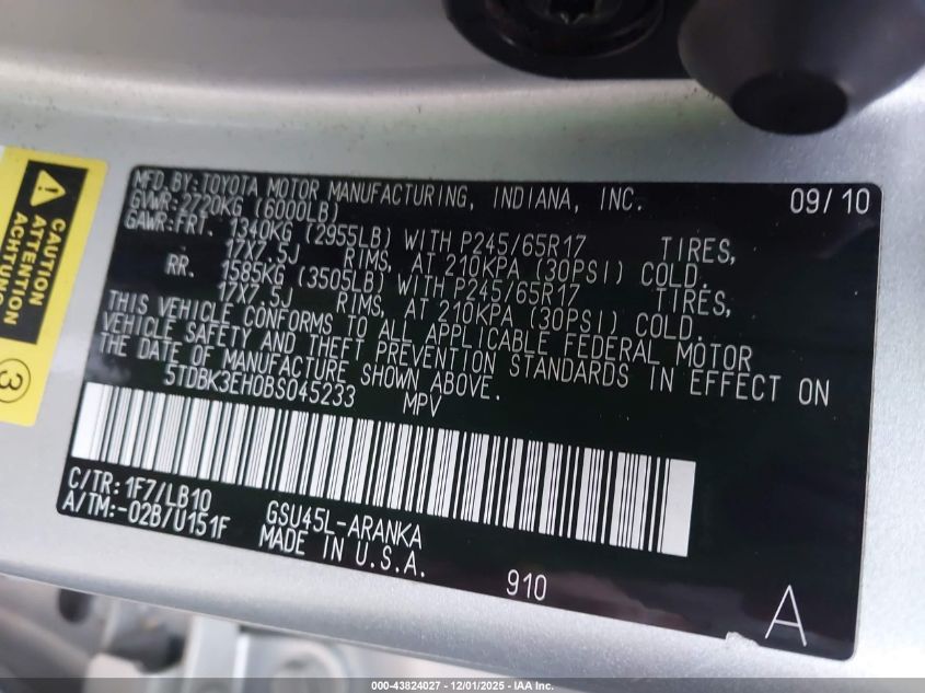 Цвет СеребряныйЦилиндры 6Привод Полный приводVIN 5TDBK3EH0BS045233Состояние СтационарноПовреждения Передняя или задняя AutoRIA