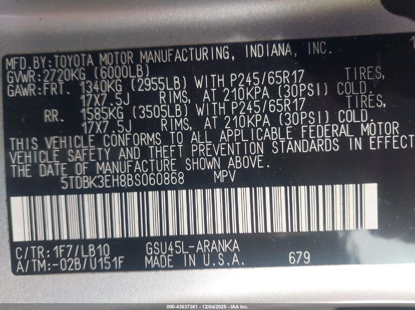 Цвет СеребряныйЦилиндры 6Привод Полный приводVIN 5TDBK3EH8BS060868Состояние Заводится и едет (проверено)Повреждения Передняя или задняя AutoRIA