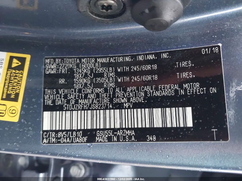 2018 TOYOTA HIGHLANDER 2018 року Бензин, 3.5, Полный привод, vin - 5TDJZRFH7JS823714 из США