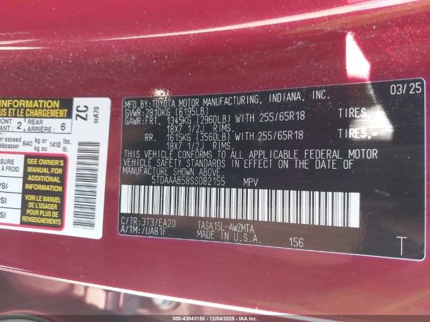 2025 TOYOTA HIGHLANDER 2025 року Бензин, 2.4, Полный привод, vin - 5TDAAAB58SS082155 из США