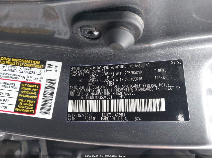 2023 TOYOTA HIGHLANDER 2023 року Бензин, 2.4, Полный привод, vin - 5TDKDRBH4PS504031 из США
