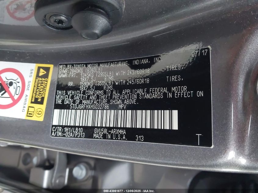 2017 TOYOTA HIGHLANDER 2017 року Гибрид, 3.5, Полный привод, vin - 5TDJGRFHXHS032786 из США