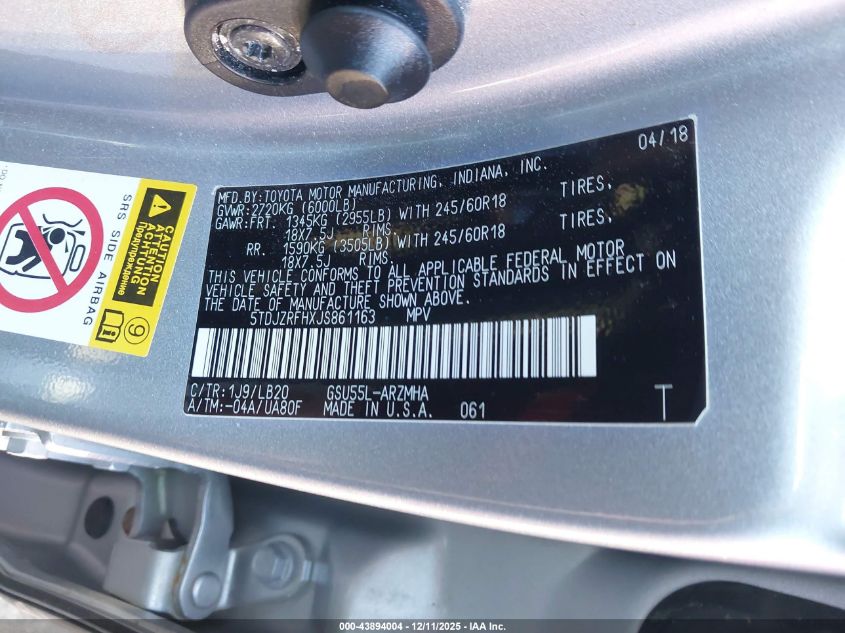 2018 TOYOTA HIGHLANDER 2018 року Бензин, 3.5, Полный привод, vin - 5TDJZRFHXJS861163 из США