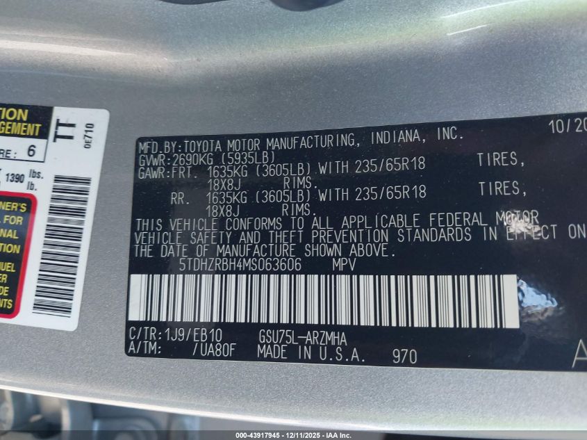 2021 TOYOTA HIGHLANDER 2021 року Бензин, 3.5, Полный привод, vin - 5TDHZRBH4MS063606 из США