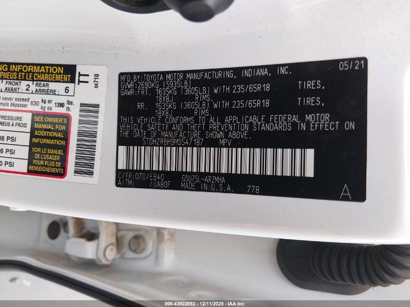 2021 TOYOTA HIGHLANDER 2021 року Бензин, 3.5, Полный привод, vin - 5TDHZRBH9MS547187 из США