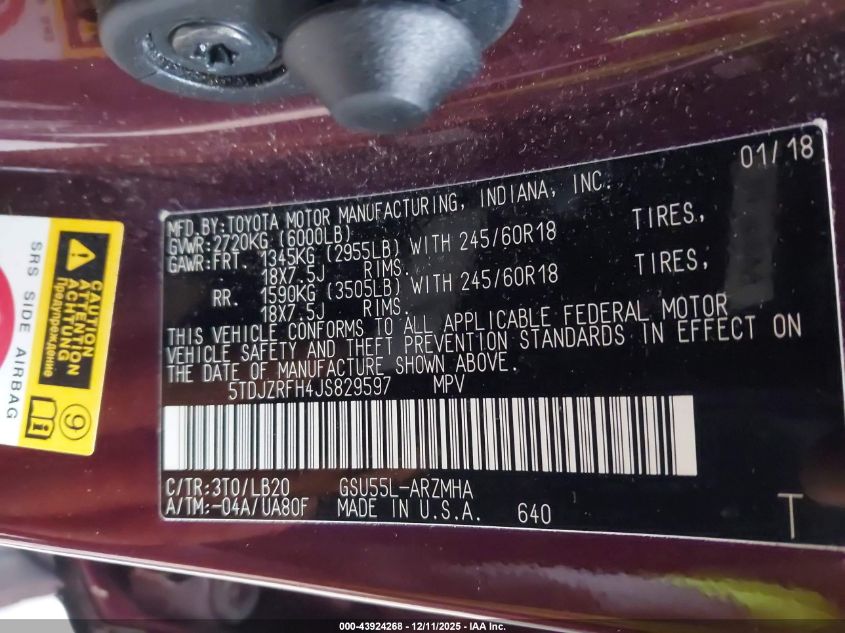 2018 TOYOTA HIGHLANDER 2018 року Бензин, 3.5, Полный привод, vin - 5TDJZRFH4JS829597 из США
