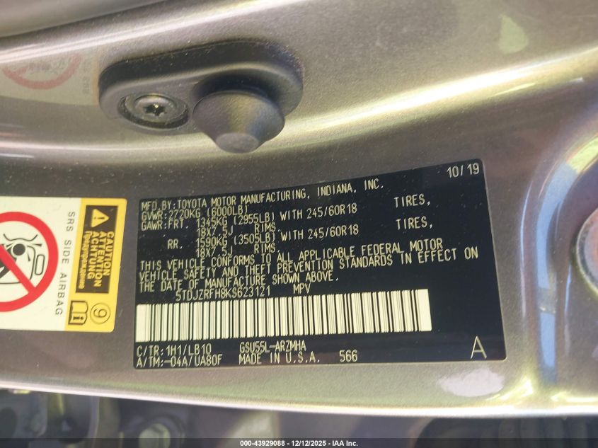 2019 TOYOTA HIGHLANDER 2019 року Бензин, 3.5, Полный привод, vin - 5TDJZRFH8KS623121 из США