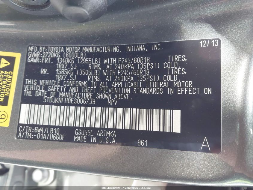 2014 TOYOTA HIGHLANDER 2014 року Бензин, 3.5, Полный привод, vin - 5TDJKRFH0ES006739 из США