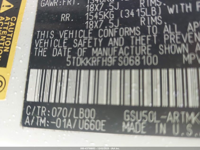 Цвет БелыйЦилиндры 6Привод Передний приводVIN 5TDKKRFH9FS068100Состояние СтационарноПовреждения Передняя правая AutoRIA