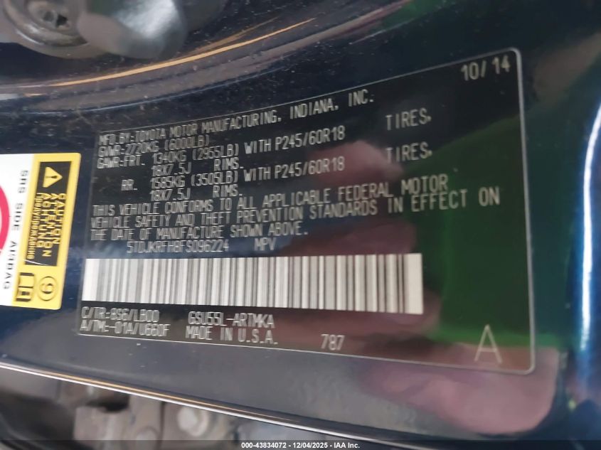 2015 TOYOTA HIGHLANDER 2015 року Бензин, 3.5, Полный привод, vin - 5TDJKRFH8FS096224 из США
